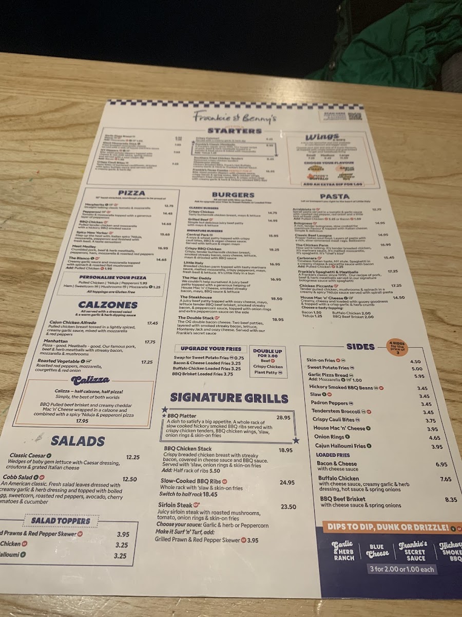 Frankie & Benny’s offers a vibrant fusion of Italian and American cuisine, delivering hearty, flavorful dishes in a warm, family-friendly setting. Their menu shines with a variety of fresh salads like the Rialto and Classic Caesar, balancing crisp greens with bold, savory toppings. For those craving classic comfort, the menu features Scottish breakfast staples alongside vegan and veggie fry-ups, catering thoughtfully to diverse tastes.